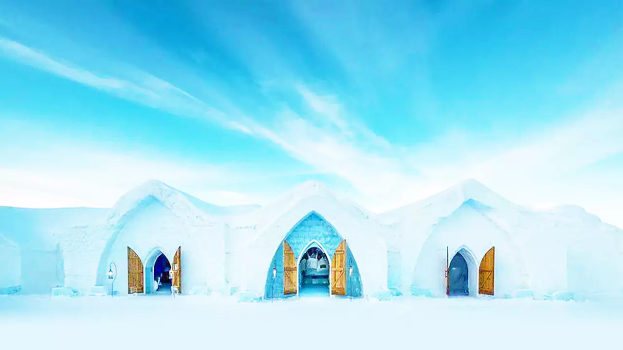 L’unique hôtel de glace en Amérique du Nord, entièrement sculpté dans la glace et la neige, avec des installations spectaculaires.